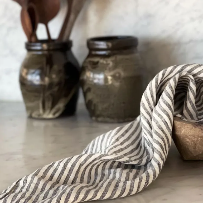 Kjøkkenhåndkle i mykt steinvasket lin. Linhåndkleet har to hemper for å kunne passe til ulike oppheng, langs langsiden og i høyre hjørne. Håndkleet har fantastiske egenskaper som gjør det perfekt for kjøkkentekstiler, inkludert høy absorberingsevne, hurtigtørkende, holdbarhet og lang levetid.