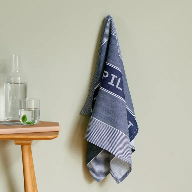 Pillivuyts kjøkkenhåndkle i størrelsen 80×50 cm i blått og hvitt er et funksjonelt valg for kjøkkenet. Det produsert av resirkulerte tekstilfibre, der stoffrestene sorteres, brytes ned og veves på nytt. Dette kan medføre små variasjoner i fargetonen fra parti til parti.
