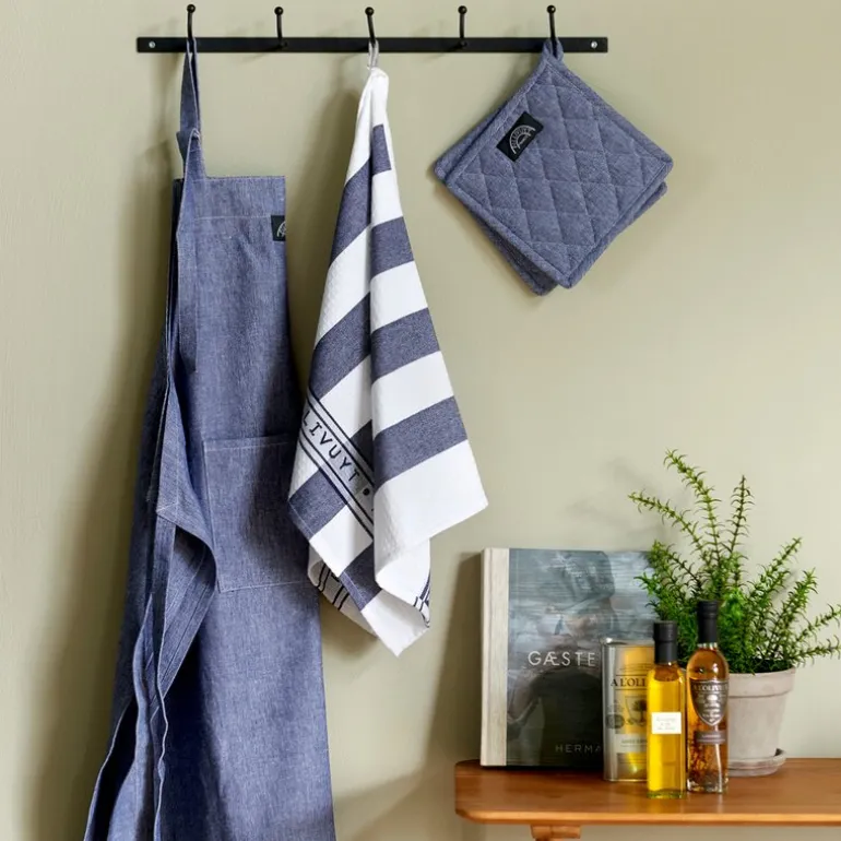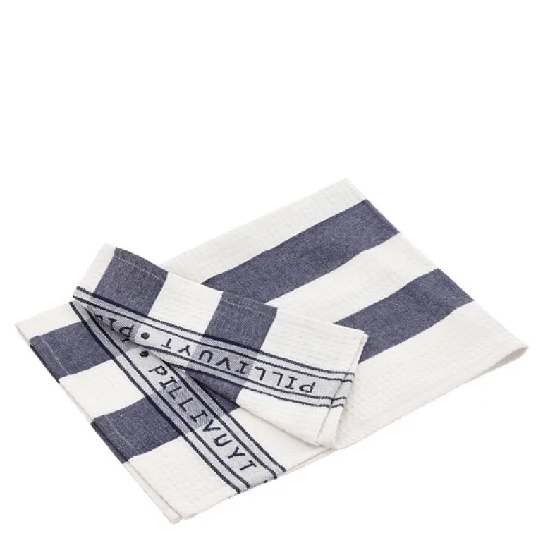 Pillivuyts kjøkkenhåndkle i størrelsen 60×90 cm i blått og hvitt er et funksjonelt valg for kjøkkenet. Det produsert av resirkulerte tekstilfibre, der stoffrestene sorteres, brytes ned og veves på nytt. Dette kan medføre små variasjoner i fargetonen fra parti til parti.