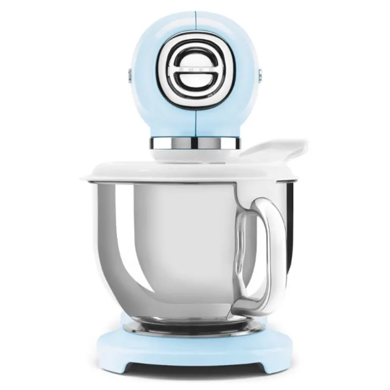 Smeg kjøkkenmaskin SMF03 4,8L i fargen pastellblå. En helfarget kjøkkenmaskin fra Smeg i 50’s Style Retro design, tilfører en eksplosjon av farge på kjøkkenet og er en vakker innredningsdetalj, samtidig som den hjelper deg med å ta dine kulinariske evner til et helt nytt nivå. Det følger også med forskjellige typer standardtilbehør, slik at du kan begynne å lage mat og bake med det samme. Med Smegs kjøkkenmaskin sparer du både tid og energi samtidig som du får bedre resultat på kjøkkenet.