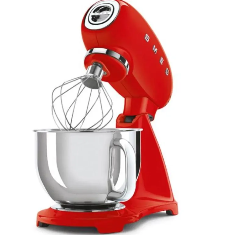 SMEG kjøkkenmaskin (SMF03) rød er maskinen for deg som liker å bake – og god design. Det stilige 50-tallsdesignet i rødt, kombinert med en kraftig motor på 800W, gjør at denne kjøkkenmaskinen imponerer både med utseende og funksjonalitet.