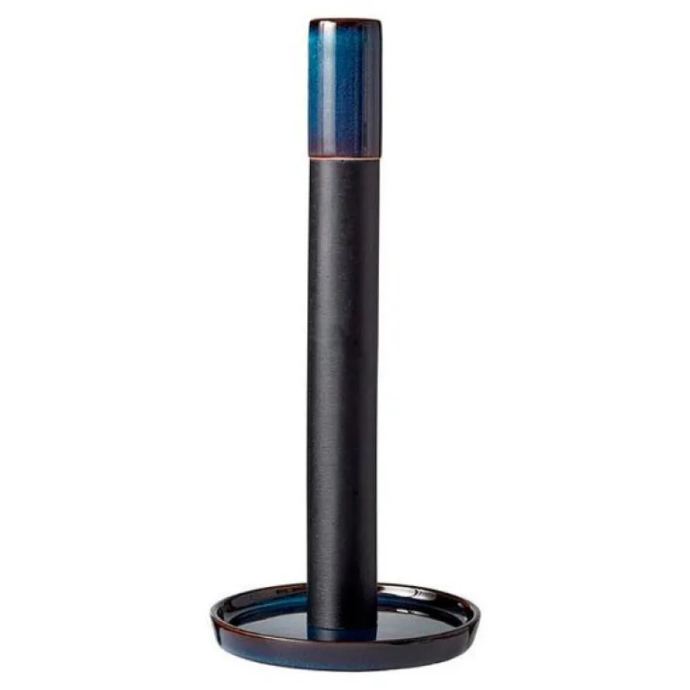Kjempefin kjøkkenrullholder som passer like fint på kjøkkenbenken som på middagsbordet. Den praktiske kanten på holderens fot sørger for at papiret ikke ruller seg ut. Holderen er 28 cm høy, og de øverste 6,5 cm er i steintøy med reaktiv glasur. Foten og toppen av håndtaket er i steintøy.
