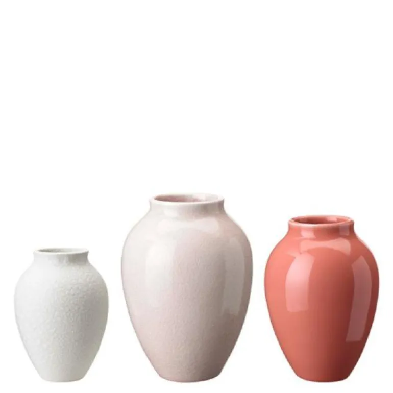 Knabstrup vasesett i rosatoner er en hyllest til klassisk keramikk med en moderne vri. Dette settet består av tre vakre vaser med høyder på henholdsvis 11 cm, 9 cm og 8,5 cm – hver med sin unike form, som gir en fin dynamikk når de plasseres sammen. Knabstrup Keramik har gjennom årene laget et utall av elegante vaser, men disse er vi spesielt stolte av. Opprinnelig designet på slutten av 1940-tallet, har vasene en tidløs og klassisk form som gjør dem til et stilfullt innslag i ethvert hjem.