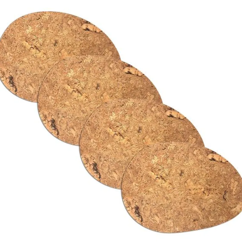 Kork organiske dekkebrikker i 4-pakning. Spisebrikkene er voksbehandlet for beskyttelse og bedre holdbarhet.