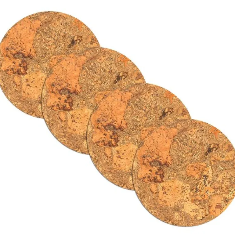 Kork runde dekkebrikker i 4-pakning. Spisebrikkene er voksbehandlet for beskyttelse og bedre holdbarhet.