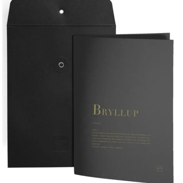 Kort til bryllup m/ konvolutt med en personlig og koselig beskrivelse av en bryllup. Velg mellom sort kort m/gull skrift eller hvitt kort med sort skrift.