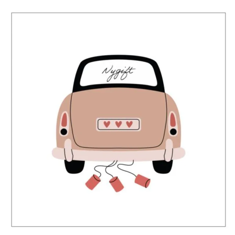 Stilrent kort til bryllup. Kortets bakside er hvit, uten tekst.