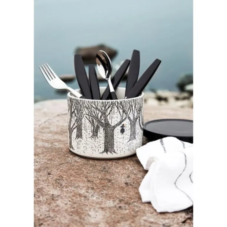 Mummi krukke med motiv Tro mot opprinnelsen. Mummifamilien er omgitt av usikkerhet og endringer, og de må finne ut hvem de virkelig er. Det er tid for en endring og Mummipappa tar med seg familien og flytter til et fyrtårn. To rørende historier flettes i hverandre: «Mummipappa og havet» og «Mummidalen i november», hvor Mummifamiliens handlinger, ord og illustrasjoner gjenspeiler Toves sorg og lengsel etter moren som er død. Den melankolske historien kommer til liv med Toves beskrivende strektegninger. Hennes enkle men allikevel rørende illustrasjoner setter stemning og får fram sjøen, vind, lys og skygge. Når Tove tegner føler hun at hun er nærme moren. Høsten kommer, og havet og øya hvor Mummifamilien nå har bosatt seg, viser uforutsigbare sider. Og Mummiene opplever alle dette på ulike måter. Mummitrollet tilbringer tid på egenhånd, Mummimamma savner hjemmet i Mummidalen og pappa prøver å forstå naturens sterke krefter. Den eneste karakteren som er seg selv er Lille My. Hun bryr seg ikke om naturens mysterier og den noen ganger dystre stemningen på øya.
