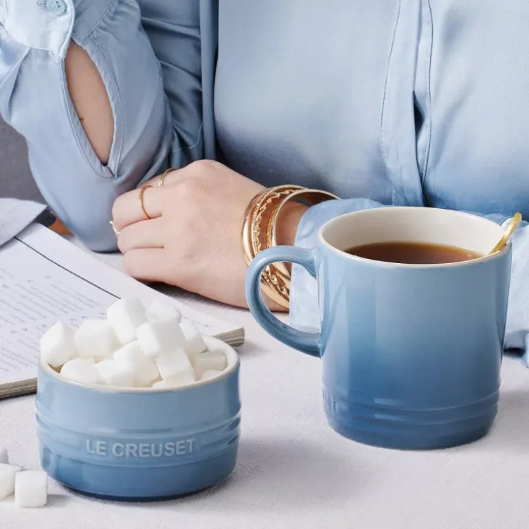Det store kruset fra Le Creusets med rette sider er perfekt til en stor kopp ferskbrygget kaffe. Her i en lekker chambray farge. Kruset har et brukervennlig og klassisk design og er fremstilt i stentøy, som hverken absorberer smak, lukt eller farge fra den varme drikken. Kruset med rette sider tåler oppvaskmaskin.