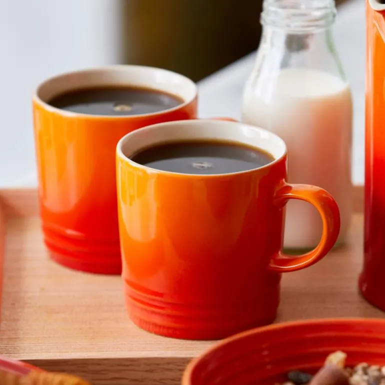Le Creusets krus 35 cl i fargen volcanic, med rette sider har akkurat riktig størrelse og fasong for en velbrygget kopp kaffe. Kruset har et brukervennlig og klassisk design og er fremstilt i stentøy, som hverken absorberer smak, lukt eller farge fra den varme drikken.