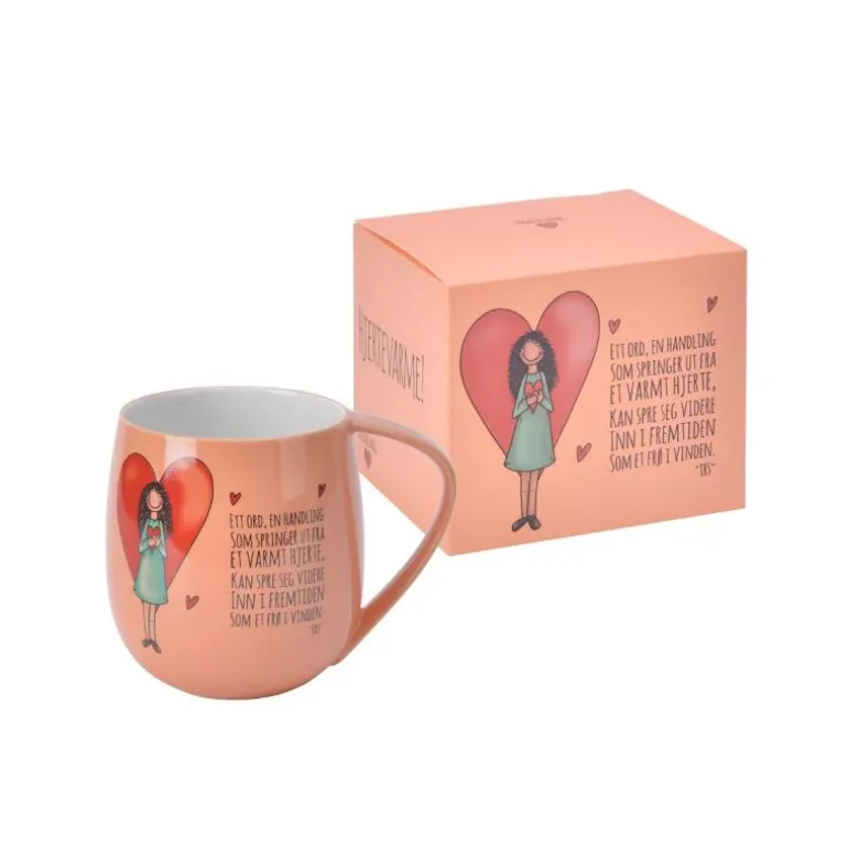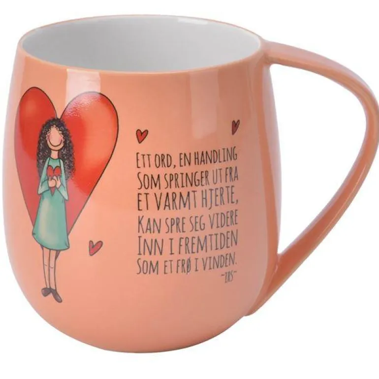 Kruset måler diameter 9 cm høyde 10 cm og rommer 400 ml. Materialet er porselen. Rengjøres i oppvaskmaskin. Hvert krus kommer i en flott gavekartong.