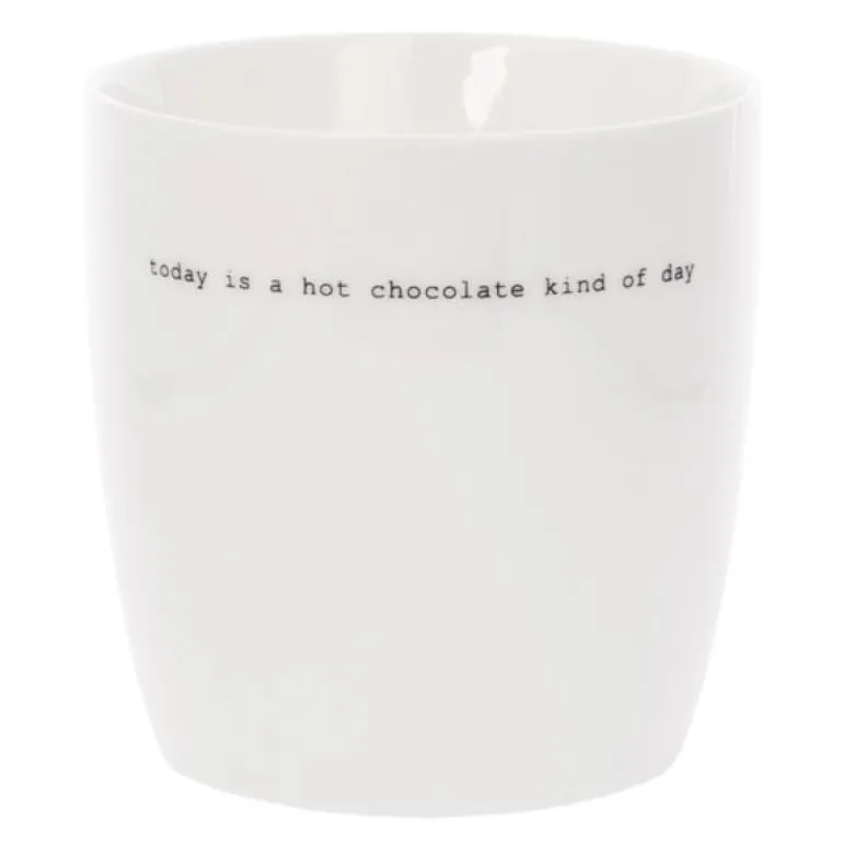 Stort, hvitt krus fra Sögne Home, med teksten today is a hot chocolate kind of day i svart. Det håndlagde sögne kruset så dagens lys i 2013, og har med sitt tynne porselen og gode hank, blitt manges favoritt! Kolleksjonen av krus kommer i ulike farger, størrelser og utvalgte populære tekster. Sögne sine krus er blitt folkekjære favoritter som de er stolte av! Krusene er med sitt tidløse design laget for å vare i generasjoner og fylle din dag med et treffende hverdags budskap. Krusene er hyggelig å bruke der du er med familie, venner, kollegaer og som gave for ulike anledninger. Krus med varme verdier.