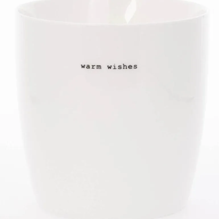 Stort, hvitt krus fra Sögne Home, med teksten warm wishes i svart. Det håndlagde sögne kruset så dagens lys i 2013, og har med sitt tynne porselen og gode hank, blitt manges favoritt! Kolleksjonen av krus kommer i ulike farger, størrelser og utvalgte populære tekster. Sögne sine krus er blitt folkekjære favoritter som de er stolte av! Krusene er med sitt tidløse design laget for å vare i generasjoner og fylle din dag med et treffende hverdags budskap. Krusene er hyggelig å bruke der du er med familie, venner, kollegaer og som gave for ulike anledninger. Krus med varme verdier.