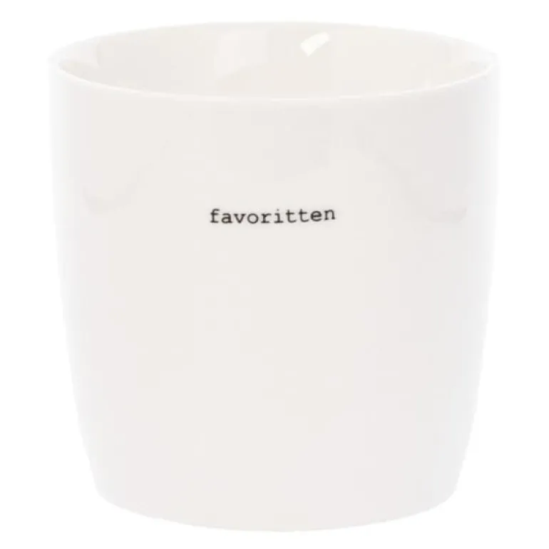 Hvitt krus fra Sögne Home, med teksten favoritten i svart. Det håndlagde sögne kruset så dagens lys i 2013, og har med sitt tynne porselen og gode hank, blitt manges favoritt! Kolleksjonen av krus kommer i ulike farger, størrelser og utvalgte populære tekster. Sögne sine krus er blitt folkekjære favoritter som de er stolte av! Krusene er med sitt tidløse design laget for å vare i generasjoner og fylle din dag med et treffende hverdags budskap. Krusene er hyggelig å bruke der du er med familie, venner, kollegaer og som gave for ulike anledninger. Krus med varme verdier.