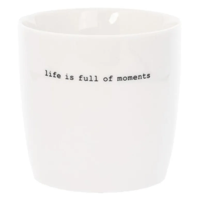 Hvitt krus fra Sögne Home, med teksten life is full of moments i svart. Det håndlagde sögne kruset så dagens lys i 2013, og har med sitt tynne porselen og gode hank, blitt manges favoritt! Kolleksjonen av krus kommer i ulike farger, størrelser og utvalgte populære tekster. Sögne sine krus er blitt folkekjære favoritter som de er stolte av! Krusene er med sitt tidløse design laget for å vare i generasjoner og fylle din dag med et treffende hverdags budskap. Krusene er hyggelig å bruke der du er med familie, venner, kollegaer og som gave for ulike anledninger. Krus med varme verdier.