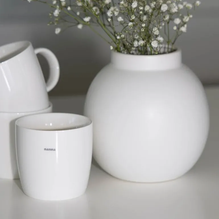 Krus mamma 30 cl hvit fra Sögne Home er et håndlaget krus. Med sitt tynne porselen og komfortable hank har dette kruset raskt blitt en favoritt blant mange siden det ble lansert i 2013. Sögne tilbyr en samling av krus i ulike størrelser og med populære tekster som treffer i hverdagen.