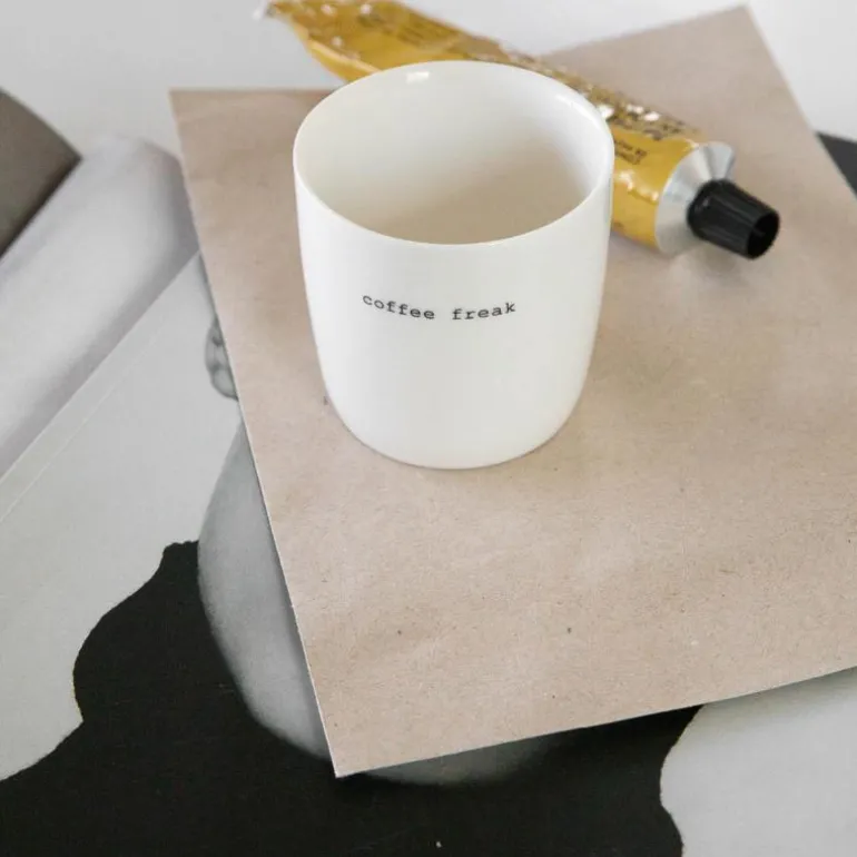 Lite, hvitt krus fra Sögne Home, med teksten coffee freak i svart. Det håndlagde sögne kruset så dagens lys i 2013, og har med sitt tynne porselen og gode hank, blitt manges favoritt! Kolleksjonen av krus kommer i ulike farger, størrelser og utvalgte populære tekster. Sögne sine krus er blitt folkekjære favoritter som de er stolte av! Krusene er med sitt tidløse design laget for å vare i generasjoner og fylle din dag med et treffende hverdags budskap. Krusene er hyggelig å bruke der du er med familie, venner, kollegaer og som gave for ulike anledninger. Krus med varme verdier.