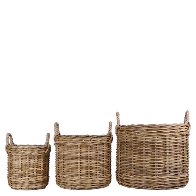 Kubu pottekurv 25/35/43 cm 3 stk grå fra GUS Design er et praktisk og dekorativt sett med tre solide rottingkurver, perfekt for å skape en naturlig og rustikk atmosfære i hjemmet eller hagen. Kurvene har diametere på 25, 35 og 43 cm, med høyder på 25, 30 og 35 cm, noe som gir stor fleksibilitet til å kombinere dem eller bruke dem separat.