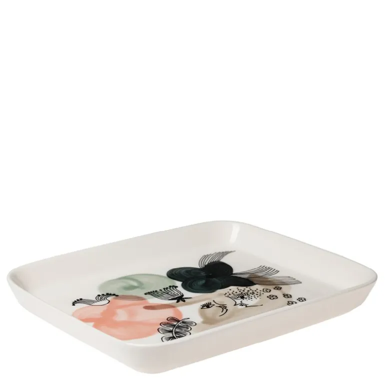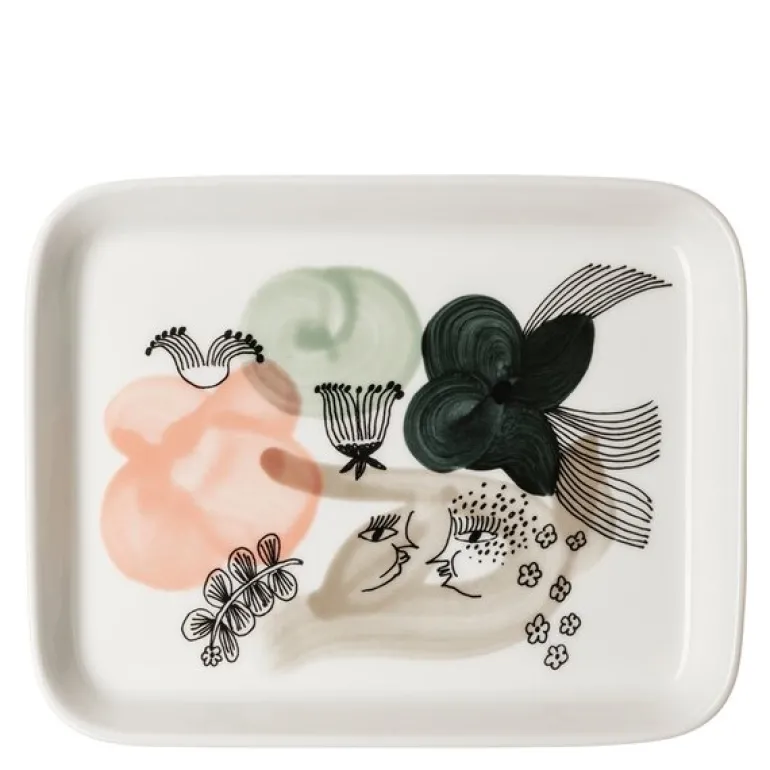 Kukkamaa tallerken 15×19 cm fra Arabia er en praktisk og estetisk detalj for alle anledninger. Denne rektangulære asjetten, designet av Armi Teva, imponerer med sitt fortryllende Kukkamaa-mønster der håndtegnede linjer og penselstrøk skaper en følelse av friskt grønt og naturlig skjønnhet.