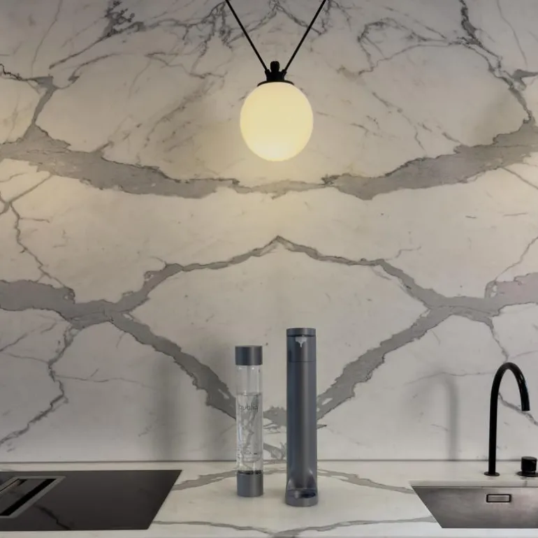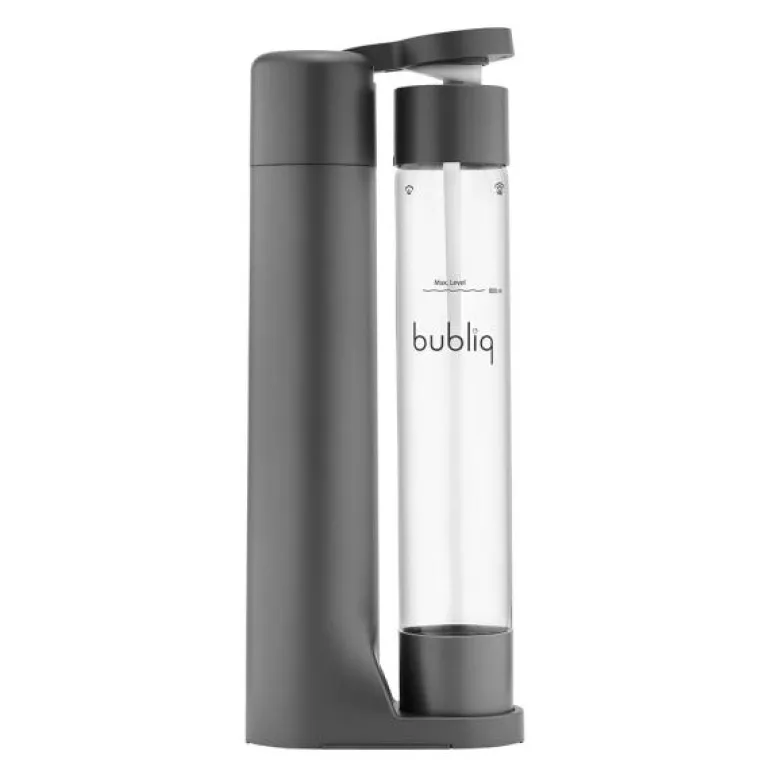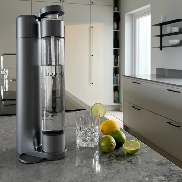 Den matt grå kullsyremaskinen fra bubliq har et klassisk og tidløs design som utstråler en selvsikker eleganse. Den minimalistiske og slanke designen, med en bredde på bare 8 cm, gjør bubliq til verdens smaleste kullsyremaskin og en stilig interiørdetalj på ditt kjøkken.