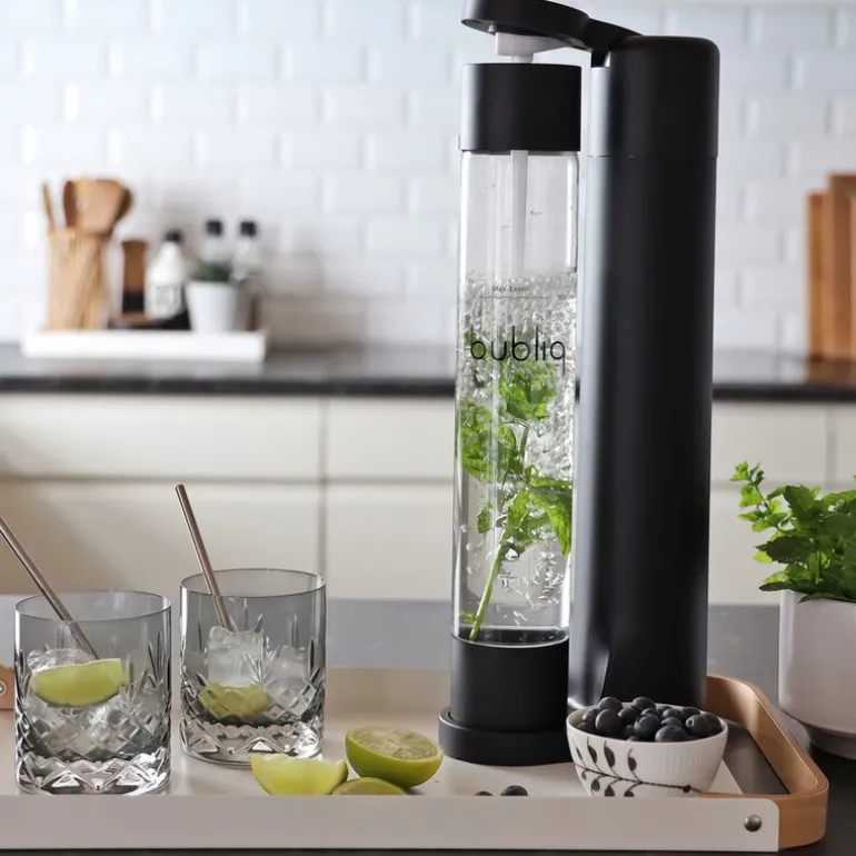bubliqs kullsyremaskin, som er midtpunktet i dette startsettet, er med sin smale og stilrene bredde på 8 cm den smaleste kullsyremaskinen i verden. Den klassiske og minimalistiske designen bidrar med en elegant følelse som passer inn i alle kjøkken.