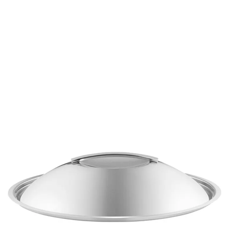 Eva Trio kuppellokk på 32 cm i børstet rustfritt stål gir optimal funksjonalitet og plass. Den buede formen gjør det enkelt å lage mat med store ingredienser, som hel kylling, uten å bekymre seg for at de stikker over kanten. Designet fremmer sirkulasjon av varme rundt maten, samtidig som damp og kondens samles og drypper tilbake for å bevare saftighet og smak.