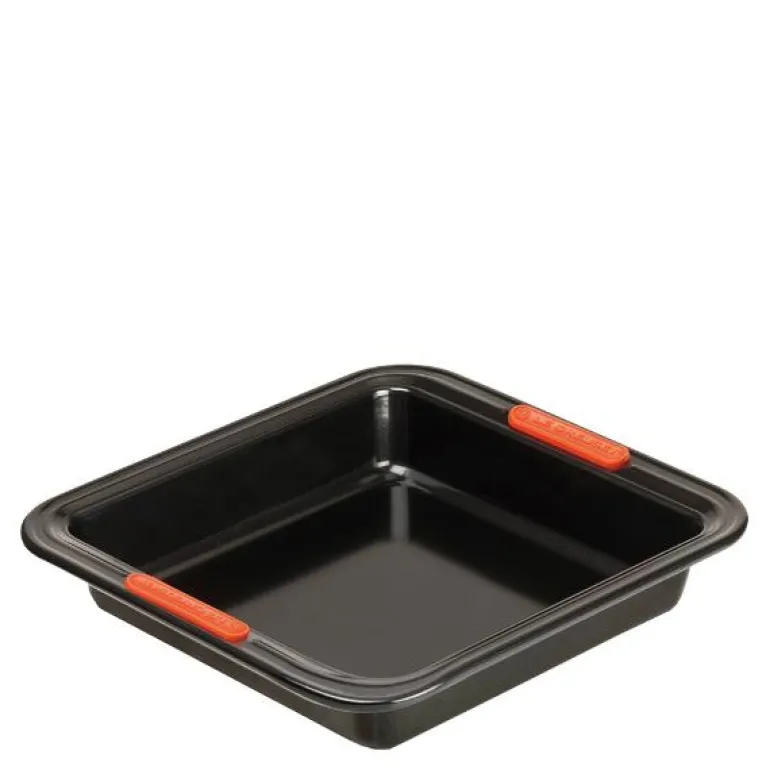 Langpanne kvadratisk 23×23 cm fra Le Creuset er en praktisk og allsidig bakeform som passer perfekt til baking av brød, kaker, paté, mousse og andre kalde desserter. Den har en slitesterk non-stick belegg som gjør at maten enkelt løsner fra formen, og den jevne varmefordelingen bidrar til å unngå at maten brenner seg fast.