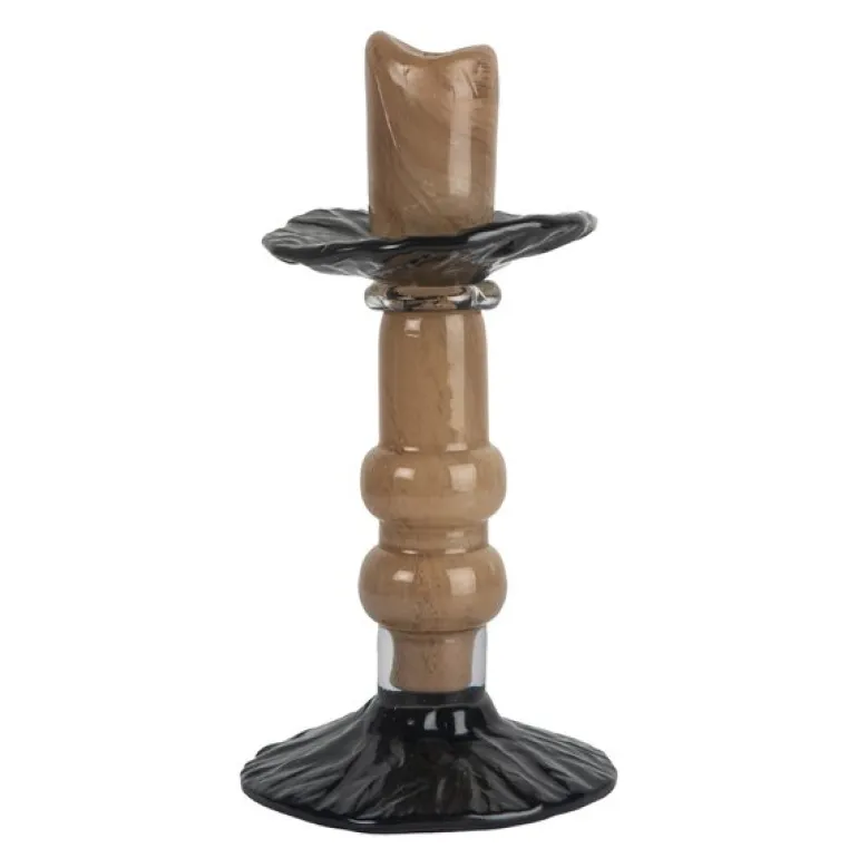 Den beige og svarte fargekombinasjonen gir et klassisk og sofistikert preg, mens den blomsterlignende toppen og basen fanger lyset og skaper en unik atmosfære. Perfekt alene eller kombinert med andre lysestaker fra Lara-serien i forskjellige høyder og farger for maksimal effekt.