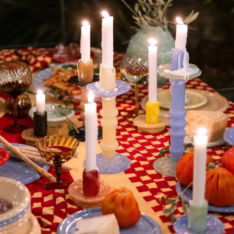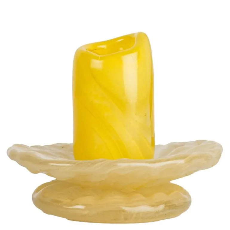 Lara XS lysestake gul/lys beige fra BYON er en liten skatt i munnblåst glass, skapt for å tilføre borddekkingen en dose ekstravaganse. På bare 9 cm minner denne lysestaken om små pastellfargede makroner, med fargetoner som sitrongul, mintgrønn, sjøblå, samt sofistikerte nyanser av sort og beige.