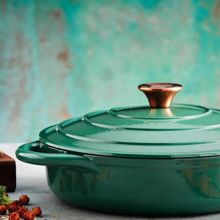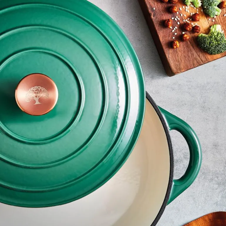 Lav støpejernsgryte 28 cm 2,5L grønn fra Barbary & Oak er laget av høykvalitets emaljert støpejern, som effektivt holder på varmen. Denne gryten er ideell for å lage deilige gryteretter til hele familien. Den emaljerte overflaten hindrer maten i å feste seg, og gjør rengjøringen enkel.
