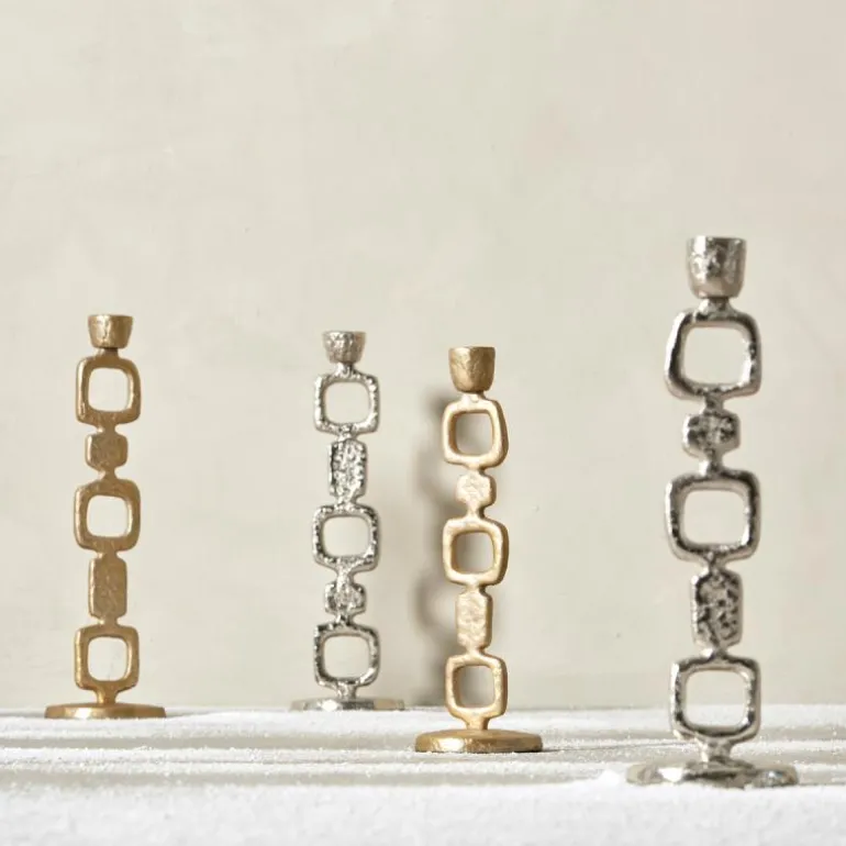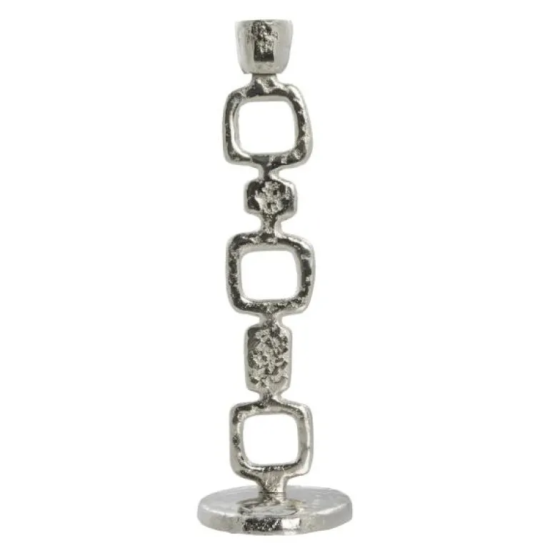 Lavillia lysestake 31,5 cm sølv tilfører en elegant touch til ethvert rom. Laget av solid aluminium, har denne lysestaken en utsøkt silhuett og en plettfri finish som garantert vil lyse opp hjemmet ditt. De flotte linjene skaper visuell interesse, og den intrikate detaljeringen i basen gir den et klassisk, men samtidig moderne utseende som passer perfekt til jul.