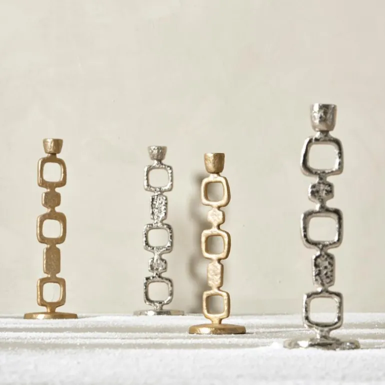 Lavillia lysestake 40,5 cm sølv tilfører en elegant touch til ethvert rom. Laget av solid aluminium, har denne lysestaken en utsøkt silhuett og en plettfri finish som garantert vil lyse opp hjemmet ditt. De flotte linjene skaper visuell interesse, og den intrikate detaljeringen i basen gir den et klassisk, men samtidig moderne utseende som passer perfekt til jul.