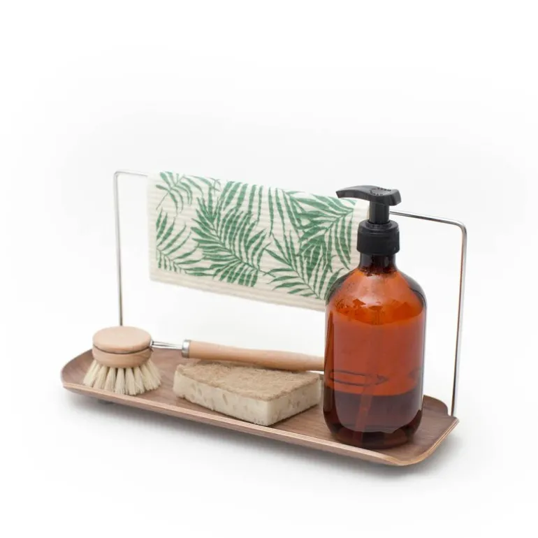 Leaf oppvaskbrett med klutholder i valnøtt fra Bosign er en praktisk og elegant løsning for organisering ved kjøkkenvasken. Med sitt stilrene design i vannavvisende tre kombinerer dette oppvaskbrettet funksjonalitet og estetikk.