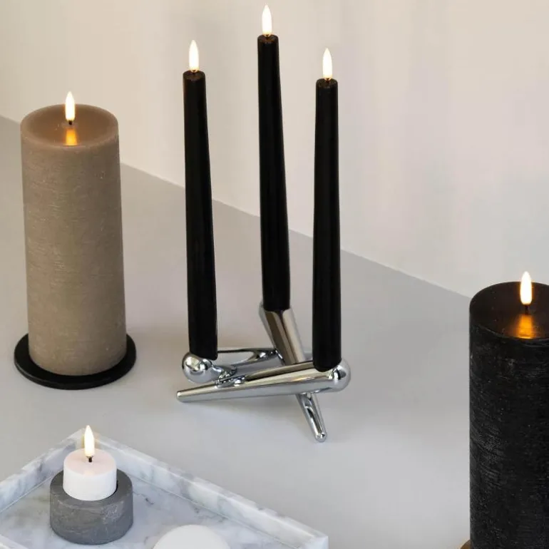Dette settet med 2 svarte kertelys fra Uyuni Lighting kombinerer elegant design og moderne teknologi. Med en diameter på 1,3 cm og en høyde på 13,8 cm passer lysene perfekt i små lysestaker eller som juletrelys. Den patenterte 3D-flammen gir en naturtro flimreeffekt som minner om ekte levende lys, men uten risikoen for brann, sot eller skadelige avgasser.