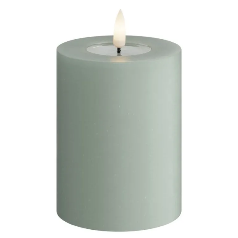 LED kubbelys 7,5 x 10 cm i salviegrønn fra Deluxe Homeart skaper en elegant og lun stemning i hjemmet. Den dempede grønntonen gir et moderne uttrykk, mens den patenterte 3D-flammen og det realistiske voksbelegget gir følelsen av et ekte stearinlys – uten brannfare.
