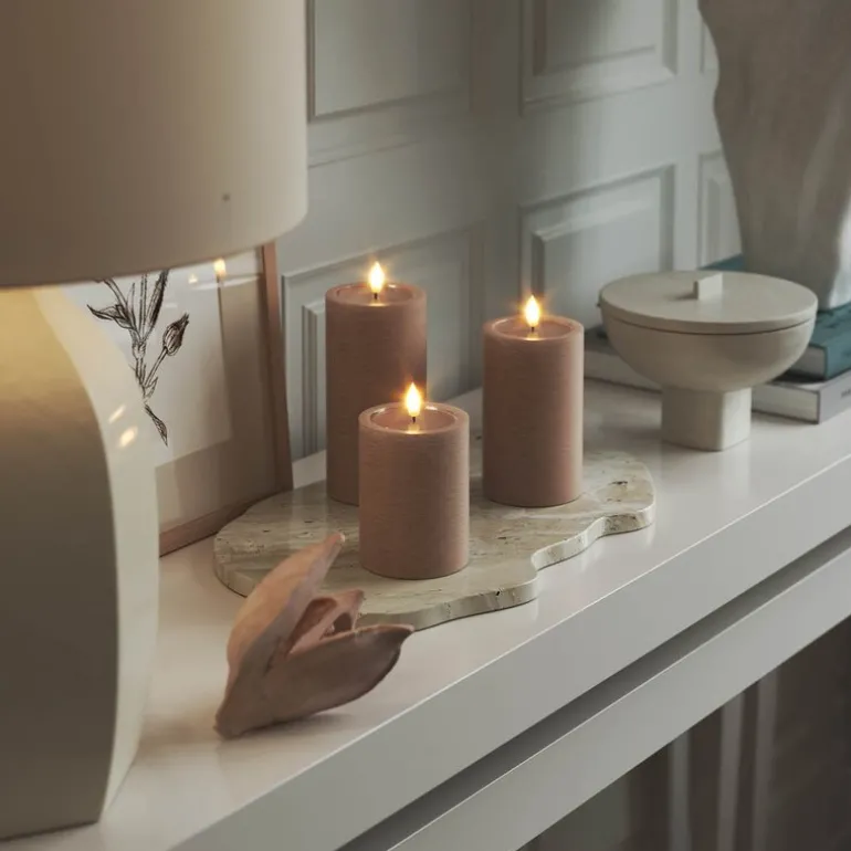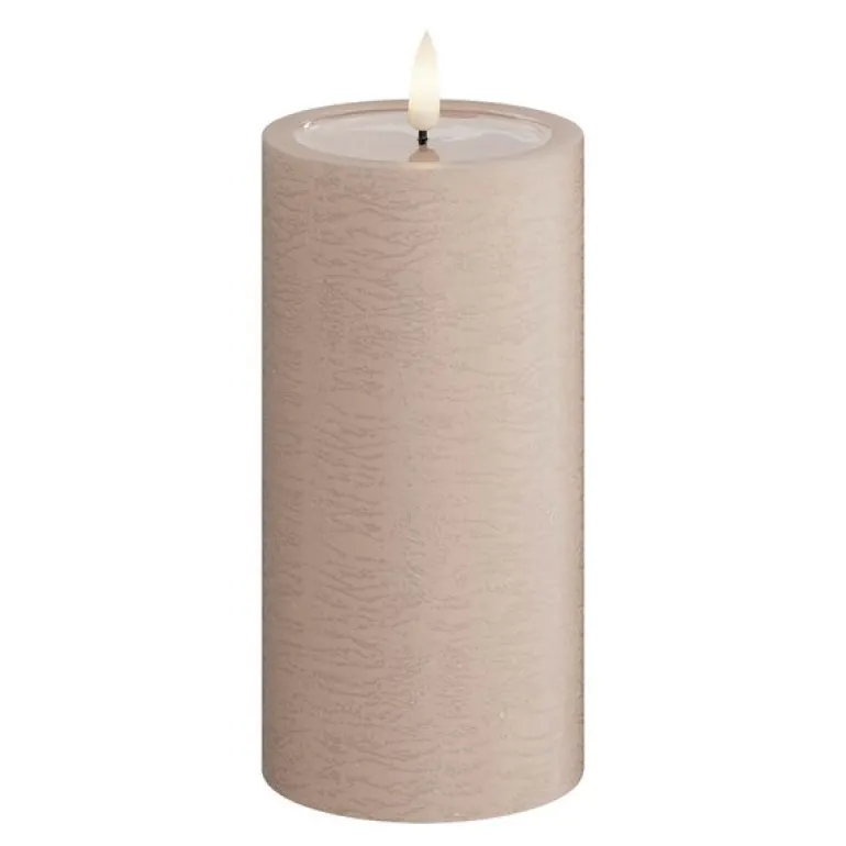 LED Kubbelys 7,5 x 15 cm i rose fra UNIQUE, kombinerer eleganse og trygghet. Den strukturert overflaten og unike wetlook-toppen gir lyset et håndlaget og autentisk uttrykk som minner om smeltet stearin.