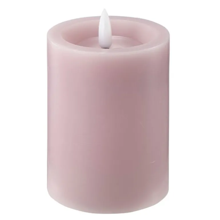 Edelweiss LED kubbelys i fargen i pastel rose måler 7,5 x 10 cm og gir en realistisk lyseffekt med blafrende flamme. Den smeltede toppen og den voksete overflaten gir lysene et uttrykk som ligner ekte stearinlys, men uten risiko for brann eller søl.