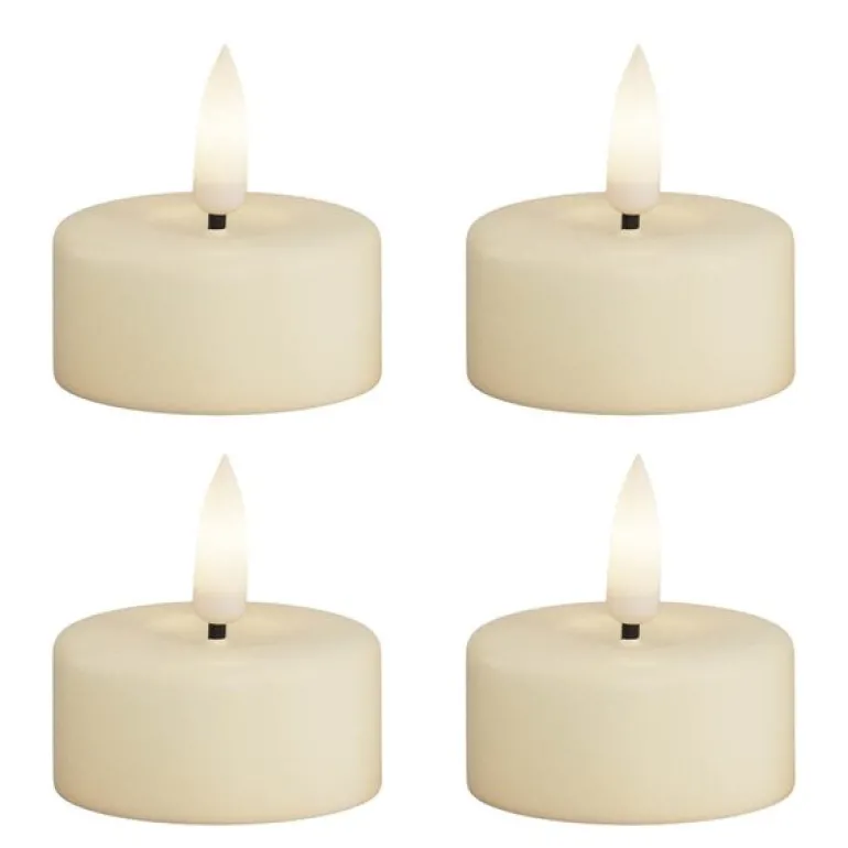 LED-telys 3,5 x 4 cm i krem fra Deluxe Homeart gir deg stemningen av levende lys – helt uten brannfare eller røyk. Med sin patenterte 3D-flamme og ekte voksbelegg skaper disse LED-lysene en naturtro glød og tekstur som minner om ekte stearinlys.