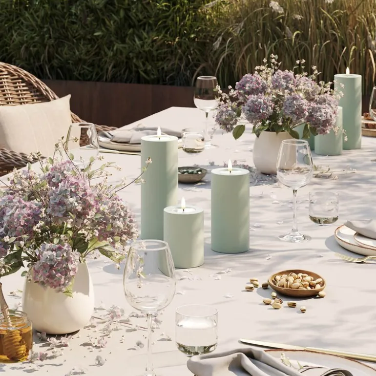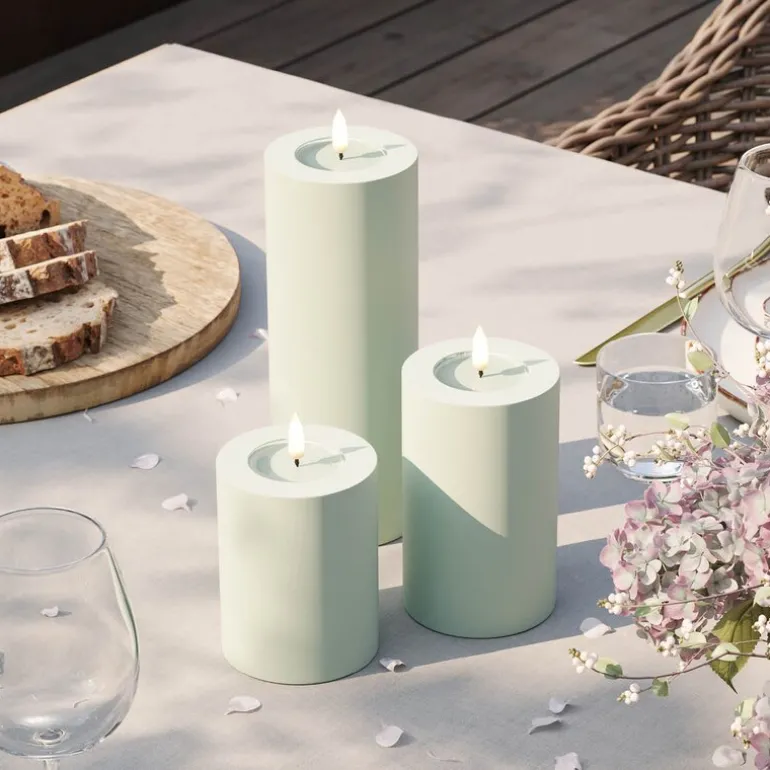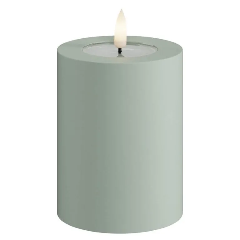 LED Utendørs Kubbelys 7,5 x 10 cm i salviegrønn fra Deluxe Homeart skaper stemning i hagen eller på terrassen – uansett vær. Det slitesterke plastmaterialet og IP44-beskyttelsen gjør lyset perfekt for utendørs bruk.