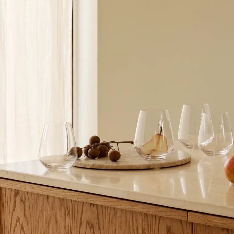 Takket være metallet erbium bevares den rene glansen over tid, da det forhindrer den hvite hinnen som kan oppstå ved maskinvask. Med sitt tidløse design passer disse glassene perfekt til både hverdag og festlige anledninger.