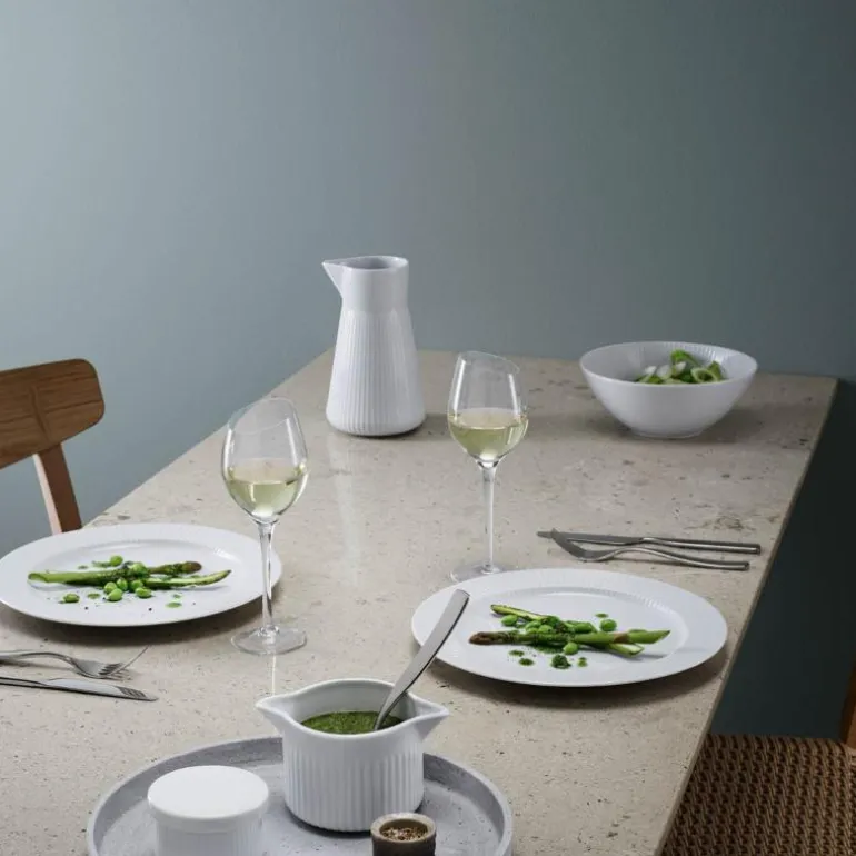 Mens Legios formspråk er absolutt minimalistisk, er Legio Nova designet med riller som danner en raffinert ramme rundt maten. Eva Trio er sponsor for det danske kokkelandslaget, og i designprosessen har vi latt oss inspirere av deres matkunst og dedikasjonen som de viser for håndverket sitt. Derfor er midten av tallerkenene rammet inn av elegante riller som fremhever anretningen.
