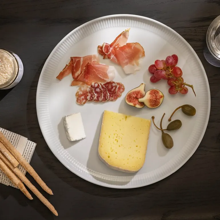 Selv om den er spesielt designet for pizza, er tallerkenen allsidig nok til å fungere som et serveringsfat til tapas, kaker eller andre retter. Den er laget av klassisk, hvitt porselen og dekorert med Legio Nova-seriens kjente riller, som elegant fremhever maten og borddekkingen.
