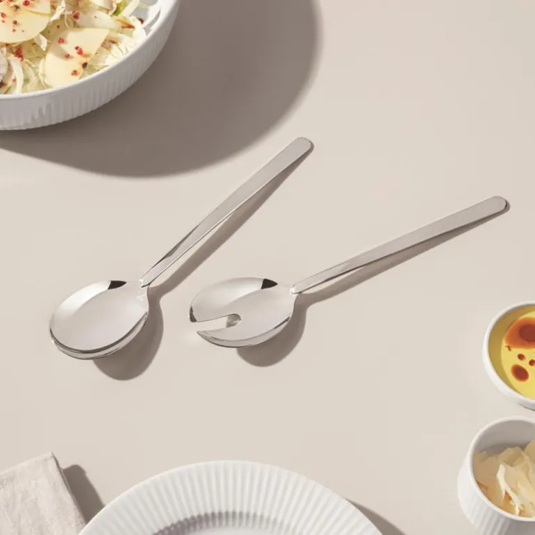 Tidløst og stilfullt salatbestikk med et klassisk og moderne uttrykk – et praktisk og flott sett til både hverdag og fest. Egner seg til både salat og pastaretter. Legio Nova salatbestikk matcher Eva Trio Legio Nova-serviset med de elegante, karakteristiske rillene, og ligger godt i hånden. Tåler oppvaskmaskin.