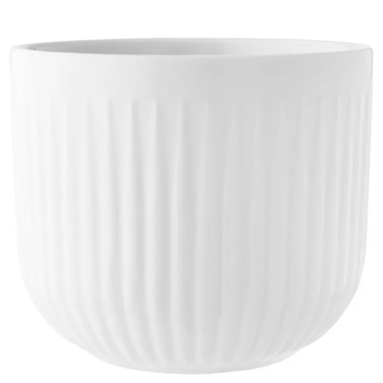 Skulpturell urtepotteskjuler fra Eva Trio Legio Nova som med sitt diskré uttrykk er som skapt til å fremheve planter og blomster. Det riflede og delikate mønsteret på utsiden og den enkle designen passer ypperlig til den nordiske interiørstilen. Urtepotteskjuleren er fin både alene og som interiørelement. Lett å holde ren og tåler oppvaskmaskin.