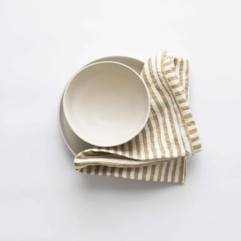 Vakker håndvevd serviett i 100% lin. Vår stripete serviett Leon er i en grovere linkvalitet og har en vakker tekstur som gir et tidløst inntrykk og vil overleve sesong etter sesong. Lin har god sugeevne, tørker raskt, er slitesterk og varer over tid og egner seg derfor utmerket til serviett. Å legge til tekstiler rundt spisebordet gir en koselig og innbydende følelse. I tekstilserien Leon finnes også kjøkkenhåndklær og duker i samme vakre farge og mønster.