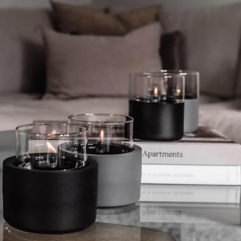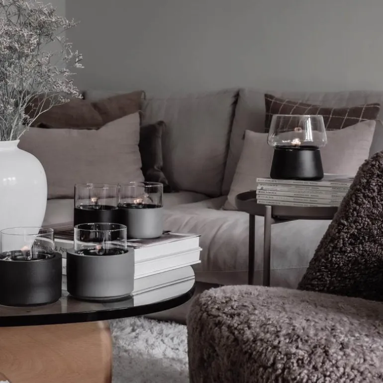 Skap den gode stemningen med bordlykten Lilly 12 cm i mørk grå, fra TenderFlame. Nyt flammer uten røyk, sot eller lukt. Livlige, dansende flammer som brenner i ca. 7 timer på en fylling. Ypperlig til bruk både inne og ute.