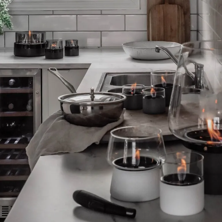 Lilly brenner i ca. 7 timer på 0,25 liter TenderFuel, et sotfritt og luktfritt drivstoff som sikrer en ren forbrenning. Med en effekt på 150–200 watt tilfører den akkurat nok varme og glød for å skape en avslappende atmosfære.