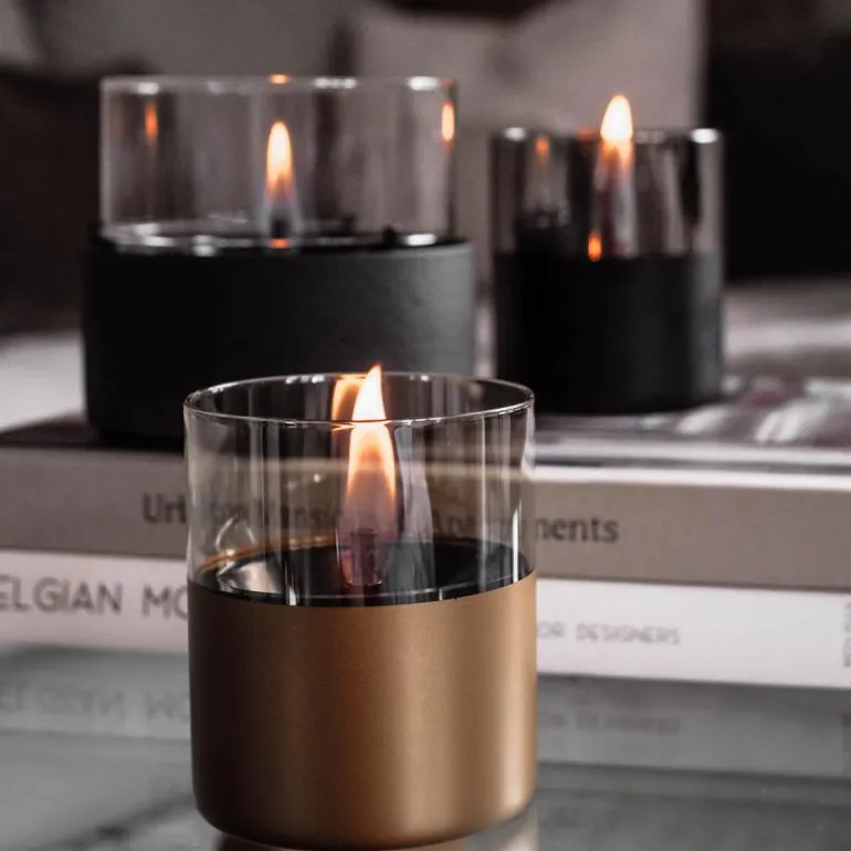 Skap den gode stemningen med kobberfarget bordlykt, Lilly 10 cm, fra TenderFlame. Nyt flammer uten røyk, sot eller lukt. Livlige, dansende flammer som brenner i ca. 7 timer på en fylling. Ypperlig til bruk både inne og ute.