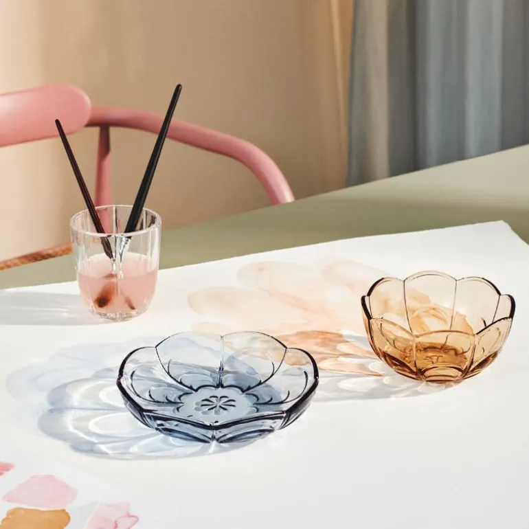 Desserttallerkenene er enkle å stable og kan vaskes i oppvaskmaskin, så du kan bruke dem daglig uten å måtte bekymre deg for å vaske dem for hånd. Serien inneholder også en stor serveringsskål, en mindre skål og vannglass – alle i fire forskjellige farger. Alle delene i Lily-serien er laget av farget glass, slik at fargen holder seg vakker over tid.
