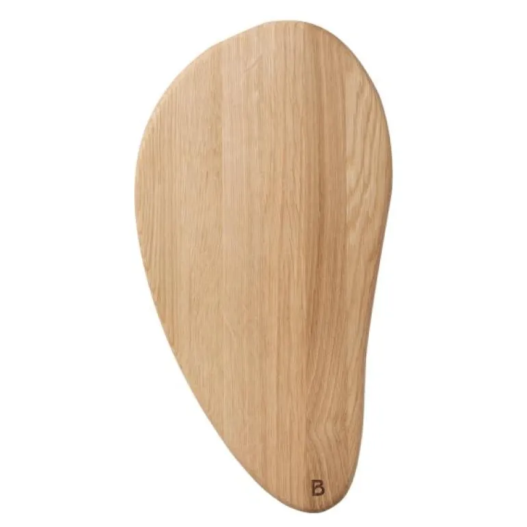 Den organsisk formede Limfjord fjølen i naturfarget oliert massiv eik er både praktisk og dekorativ, både på kjøkkenbordet opp langs veggen og på det veldekkede bord.